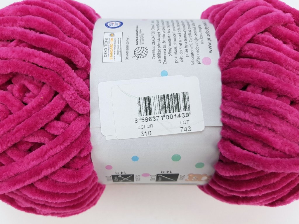 Ideální volbou pro větší háčkované hračky. Je měkká, sametová a velmi dobře se s ní háčkuje.