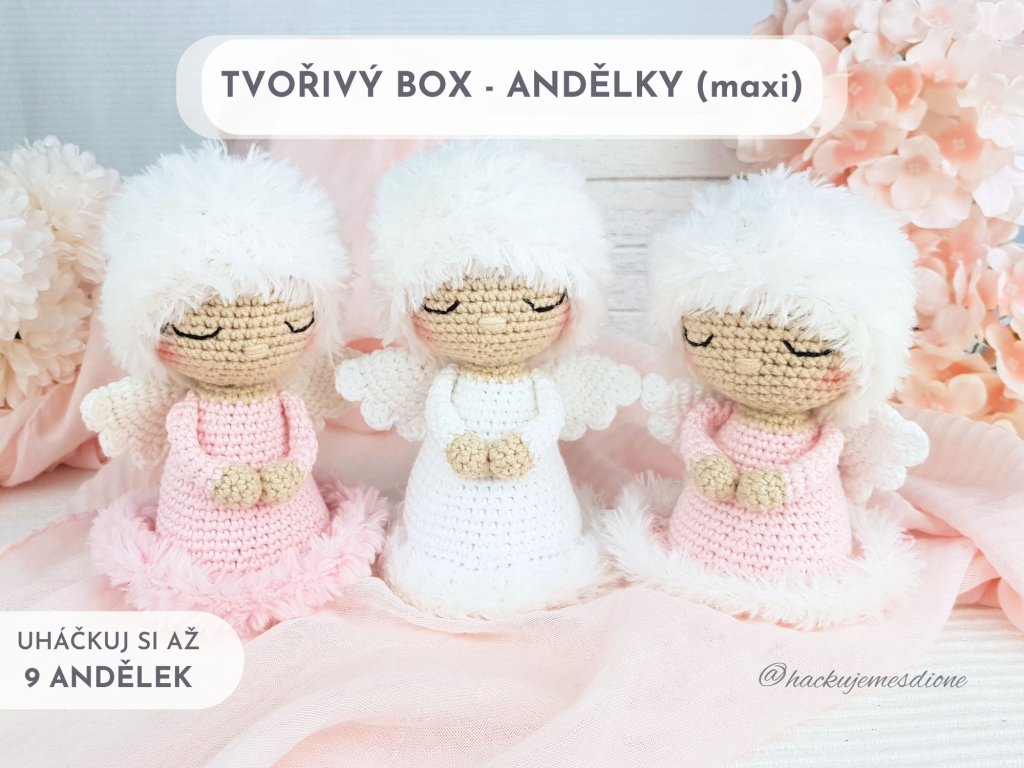 Díky tomuto boxu uháčkuješ až 9 andělek v různých barevných kombinacích.