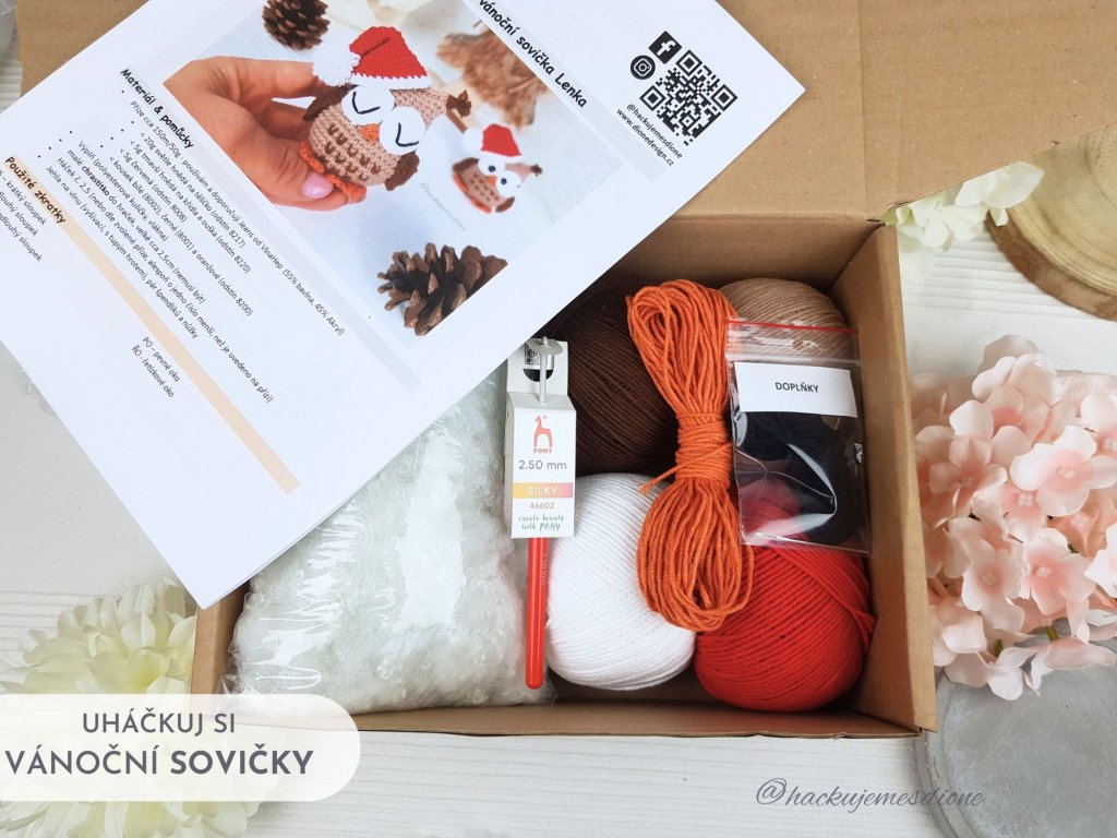 Diky tomuto speciálně sestavenému TVOŘIVÉMU BOXU můžešuháčkovat 6 až 7 soviček. Můžeš je pak darovat jako malé DÁRKY kolegyním, kamarádkám, učitelkám atd.