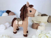 Koník má propracované detaily – sedlo, ohlávku i opratě – a návod na něj pro vás bude dostupný už v neděli 28. 9.. Připravila jsem pro vás i háčkovací boxy, které budou obsahovat vše, co budete na výrobu potřebovat.
