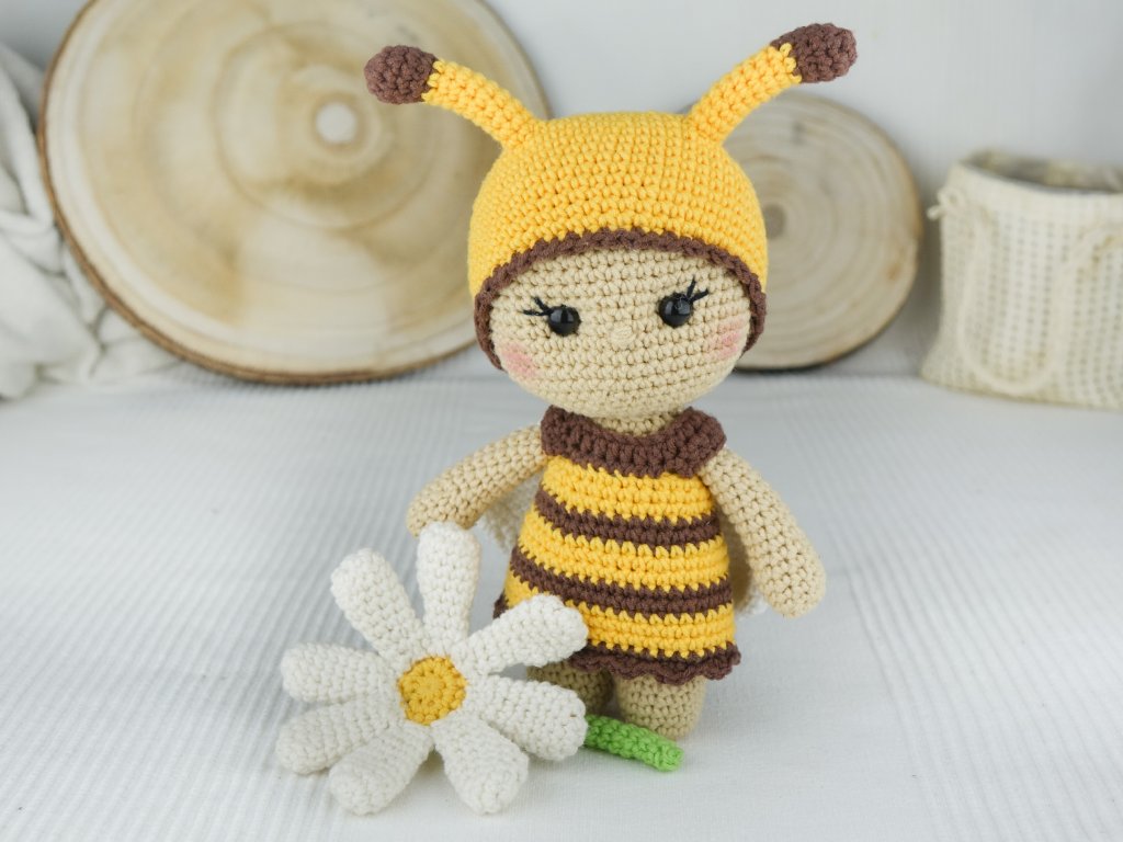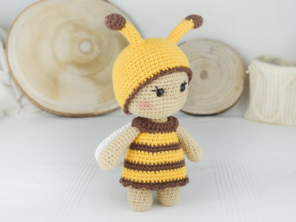 Vlastní podrobný PDF návod na háčkovanou včelku vás provede krok po kroku výrobou panenky. Návod je napsán opravdu podrobně s více než 70 obrázky.